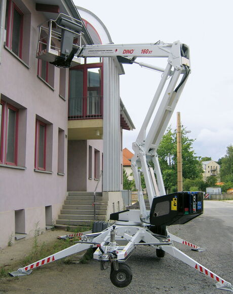 Die leichte und preissparende Variante für Hinterhöfe, Innenräume, wenig belastbaren Untergrund bei extremen Leistungsdaten mit Arbeitshöhen bis 28,00 m und seitlichen Reichweiten bis 12,00 m.